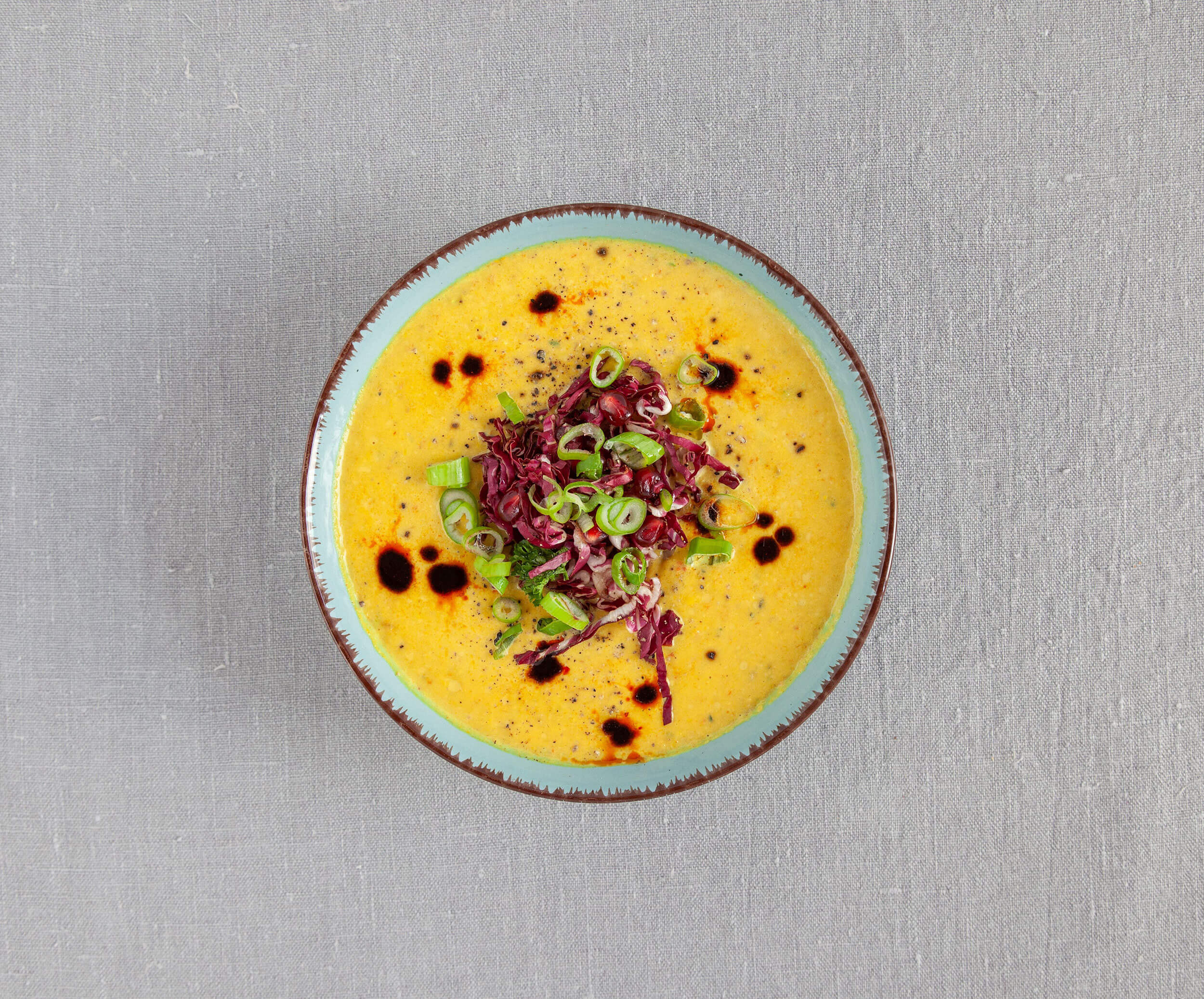 mit Spinat, Karotten, Blumenkohl, Kichererbsen. Ausgewählte Gewürze und hochwertige Öle runden das tolle Gericht ab.