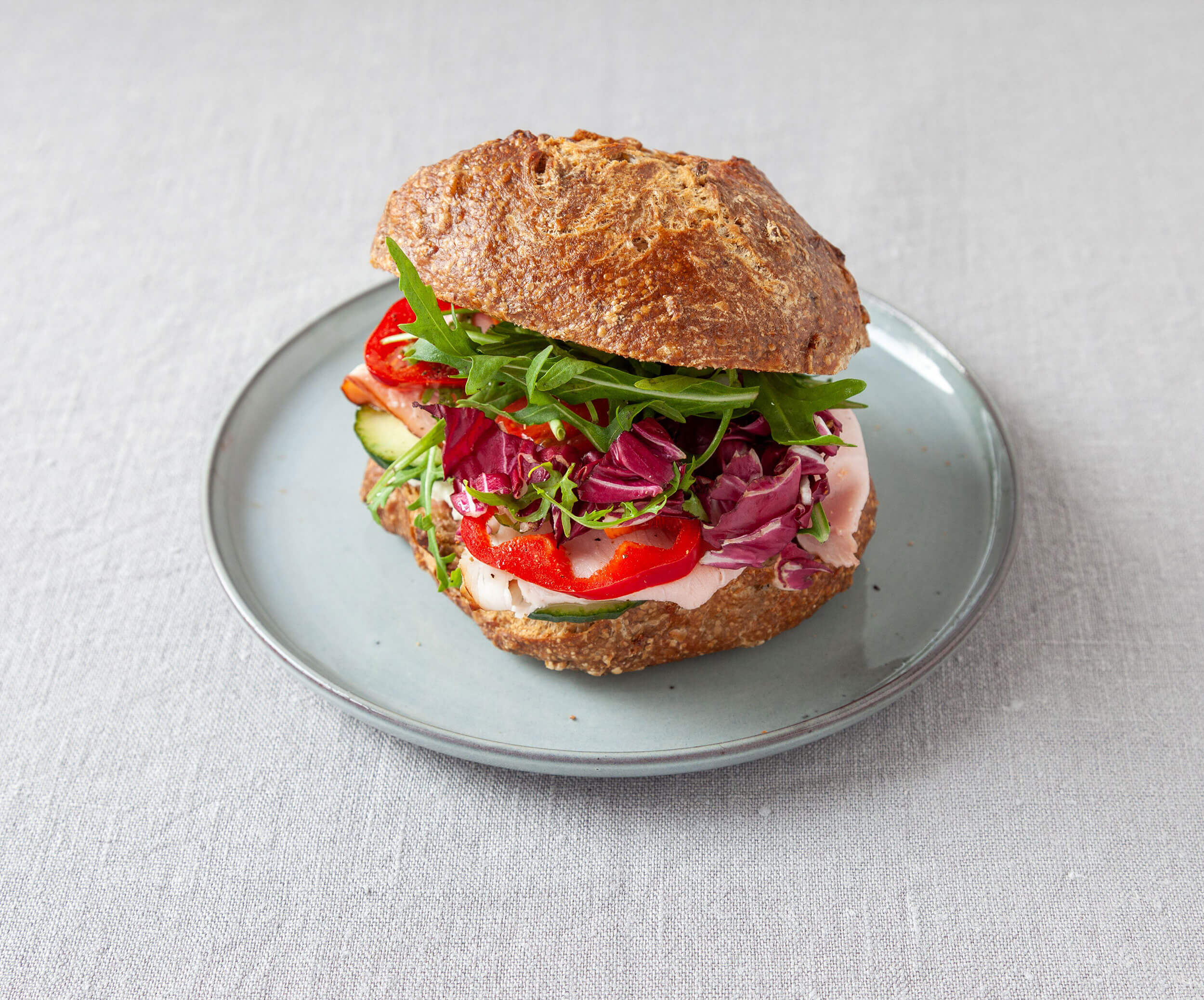 Schinken, Paprika, Salat. Auch mit Salami oder veganer Wurst.